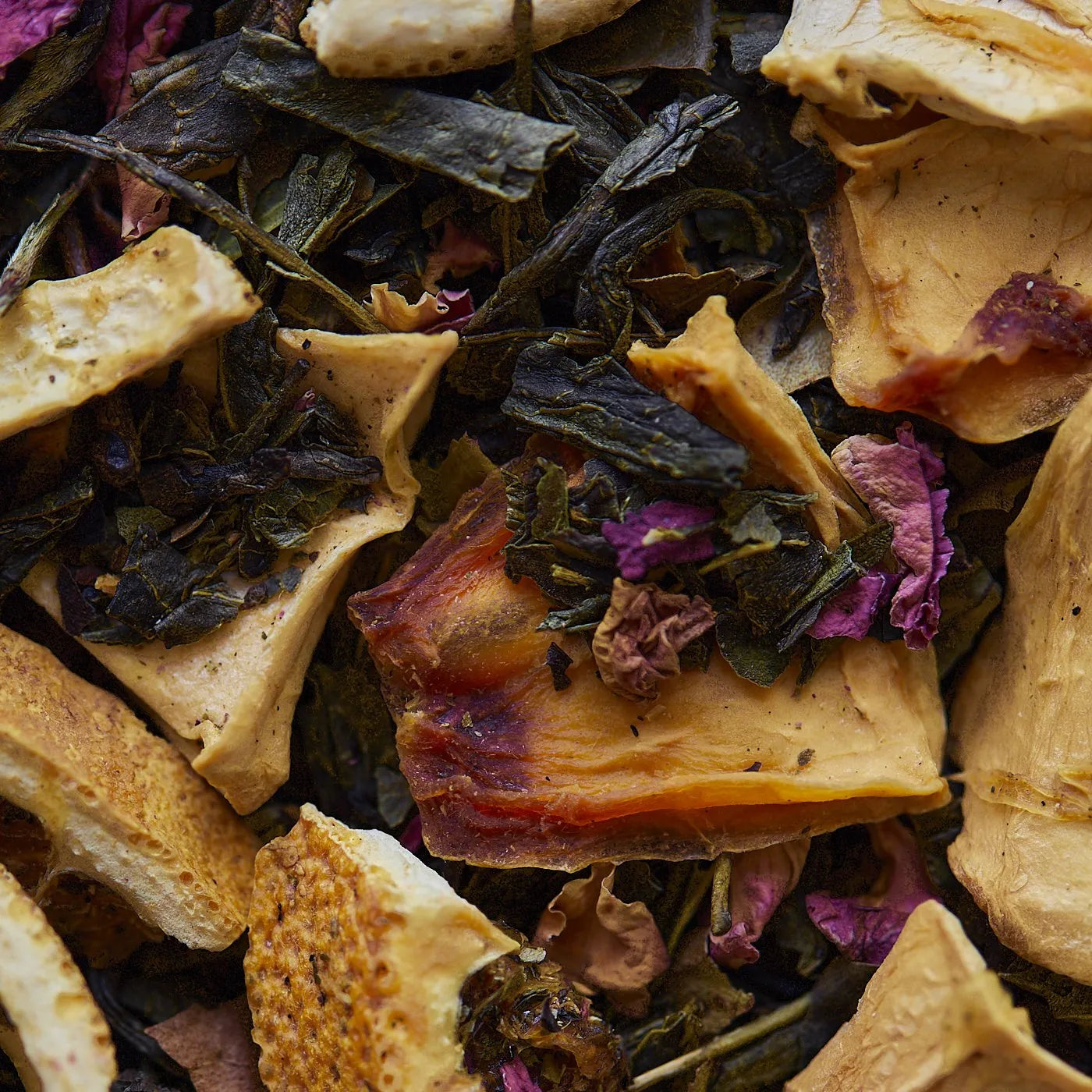 Úžasné! zelený a biely čaj obohatený o plátky papáje, pomarančové kôry a okvetné lístky ruží. So sladkými, sviežimi a ovocnými tónmi.